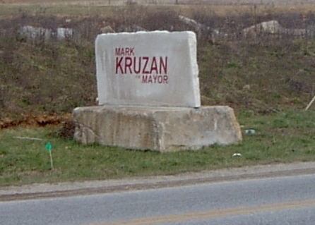 The "Kruzan for Mayor" limestone yard sign