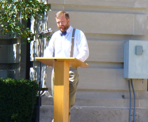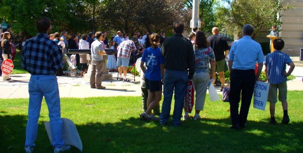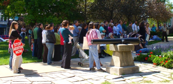 About 130 people attended the Fall Rally for Life yesterday on the Monroe County Courthouse lawn, protesting abortion and a government that allows abortion to continue. David Talcott welcomed people to the event and challenged the crowd with a with a Bible verse: Learn to do well; seek judgment, relieve the oppressed, judge the fatherless, plead for the widow. Isaiah 1:17. Can there be any more obvious example of relieving the oppressed than standing up for the unborn?
