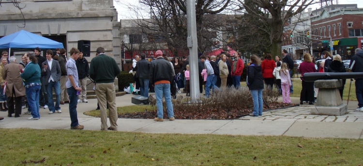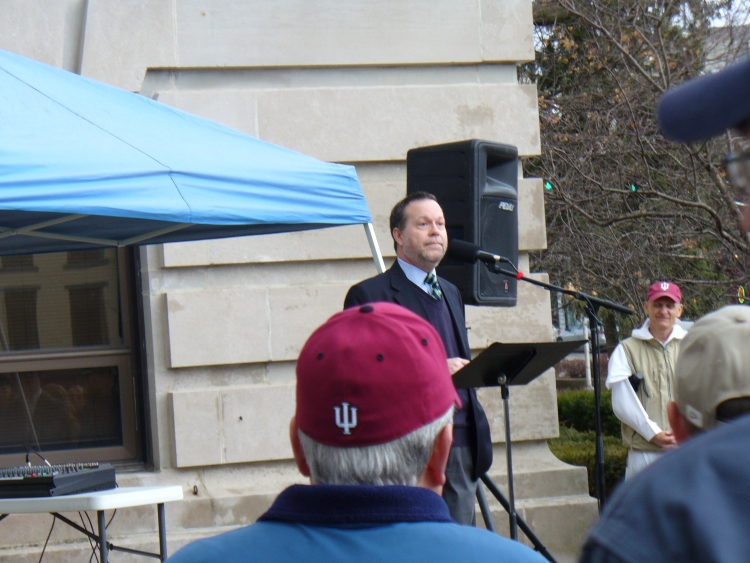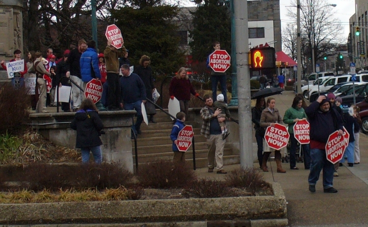 Over 200 people gathered at the Monroe County Courthouse on a rainy January afternoon to sadly remember the 1973 Supreme Court decision that threw out state laws against the killing of unborn children and to protest the continuing slaughter of unborn children in Bloomington and around the nation. The rally was organized by Christian Citizens for Life, an alliance of Monroe County churches committed to oppose abortion and advocate for a life-affirming culture.